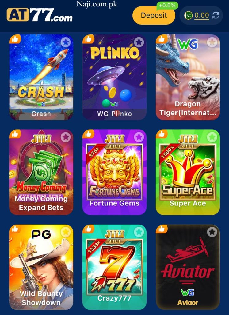 The design of the AT77 game is very simple and easy to use, due to which new users can also play the game without any difficulty. - Daily bonuses and rewards system.